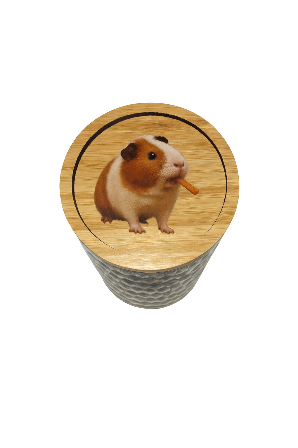 .Keramická dózička na pamlsky nebo na sušené bylinky. Objem 370 ml. Materiál: dřevo, keramika. Vyrobeno v Číně.
