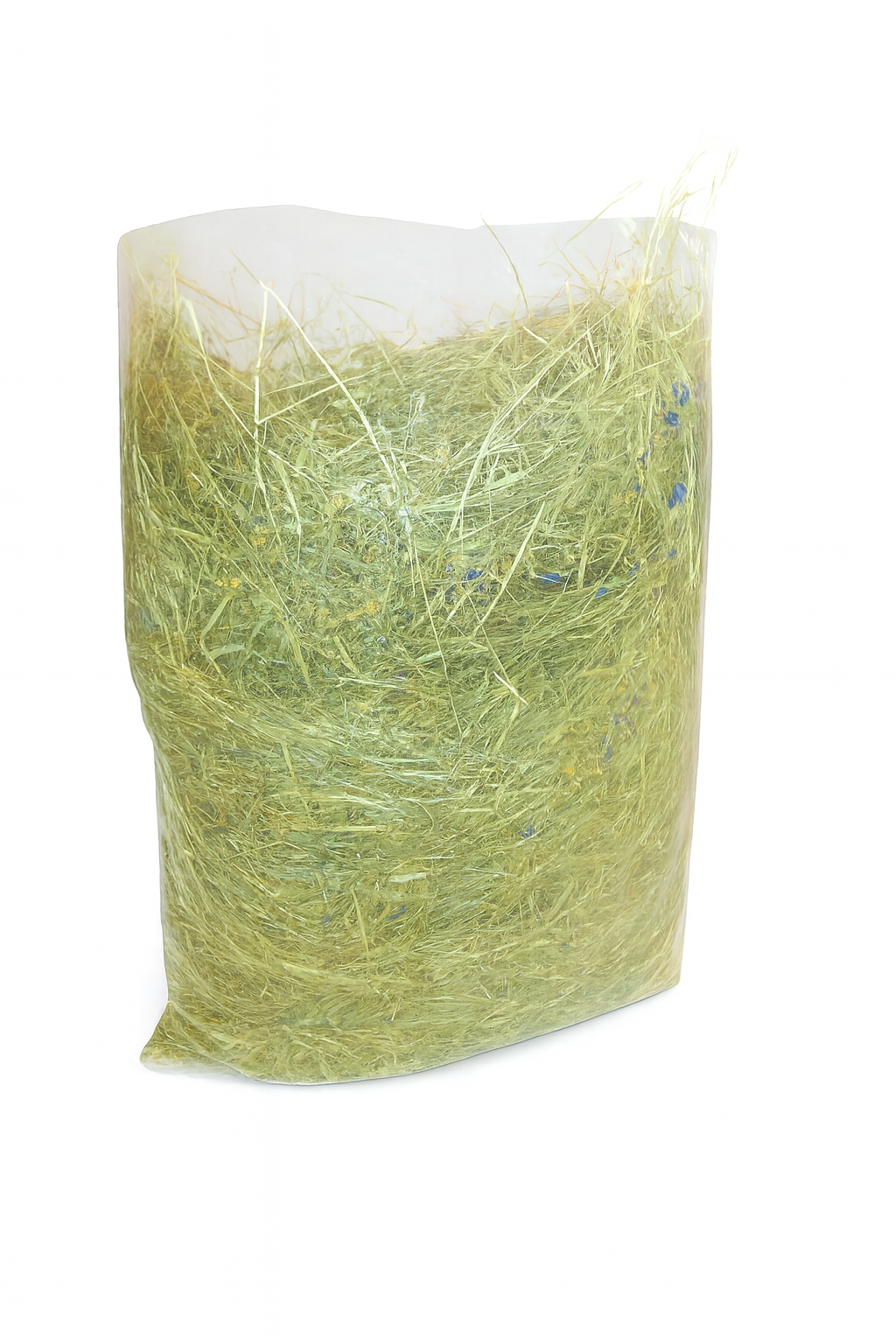 Seno z Jizerských hor s bojínkem, chrpou, jitrocelem a heřmánkem. Seno je krásně zelené. Váha: 1,1 kg