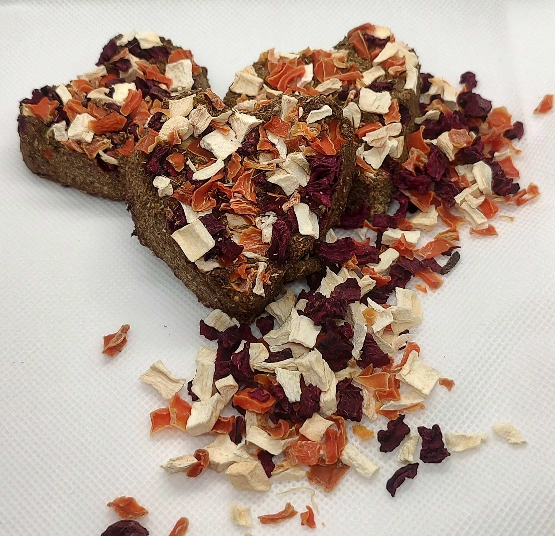 Bezobilná sušenka s domácí sušenou zeleninou – petržel, řepa a mrkev.